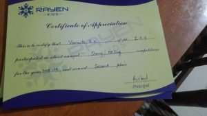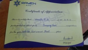 Siri Adiga, 3rd place swimming competition at Dayanand sagar public school